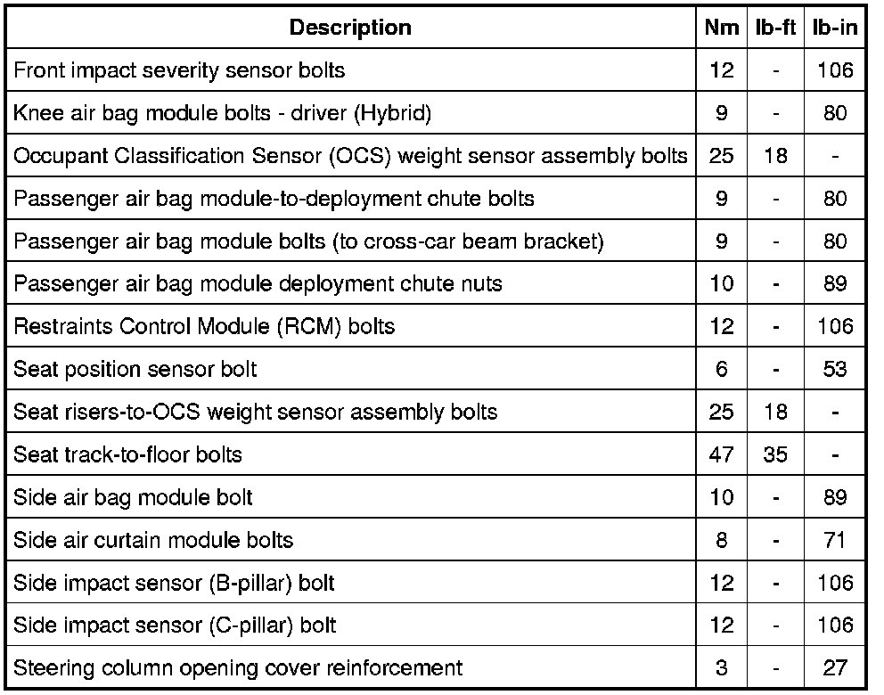 Torque Specifications