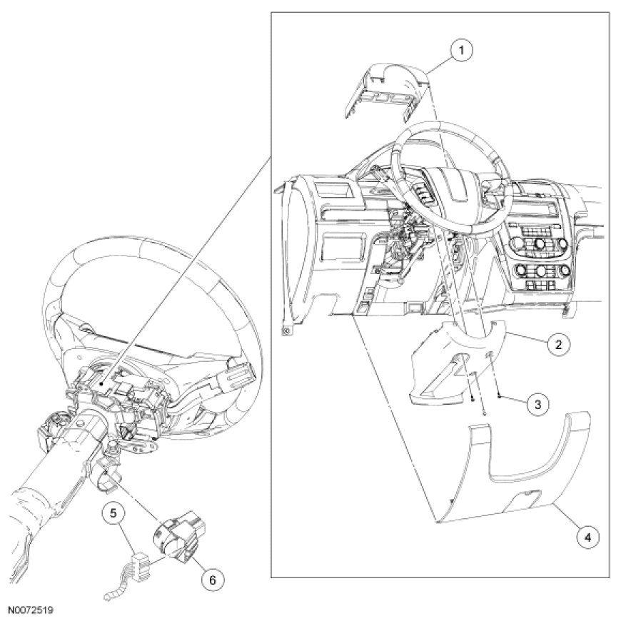 5. NOTE: Lower the steering column to the lowest tilt position.