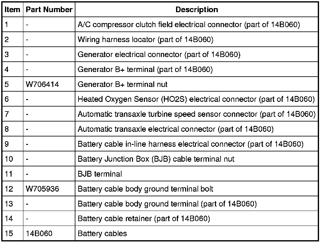 5. Disconnect the battery cable in-line harness connector from the engine compartment wiring harness and position aside.