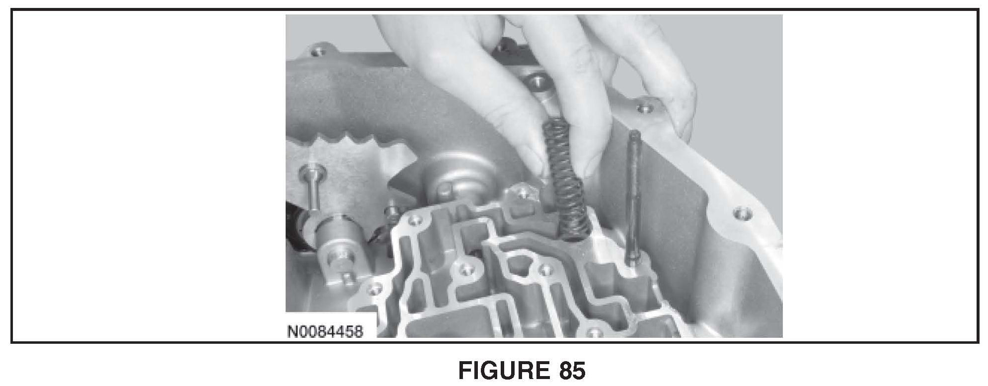 66. Install the internal cooler bypass valve spring. See Figure 85.