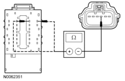 - Measure the resistance between the SJB, harness side, and the inoperative door lock actuator harness side as follows: