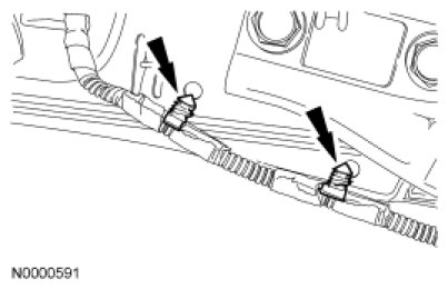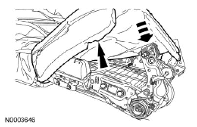 5. NOTICE: Note the position of the wiring harness for installation. An incorrectly routed wiring harness can be damaged when the seat is moved.