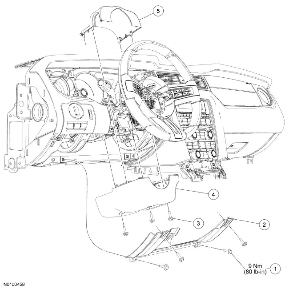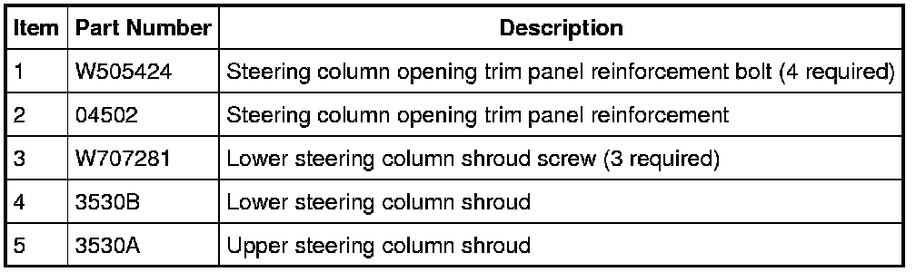 2. Remove the steering column opening trim panel. For additional information, refer to the exploded view in Instrument Cluster / Carrier &/or Interior Moulding / Trim.
