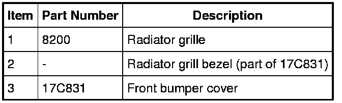 2. Release the radiator grille retaining clips from the radiator grille bezel and remove the radiator grille.