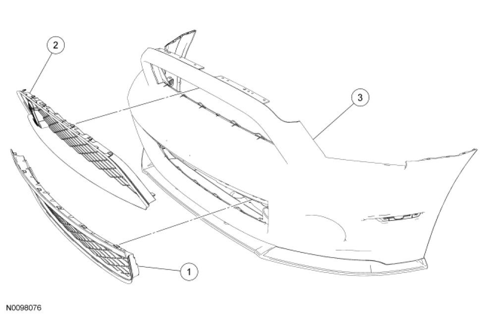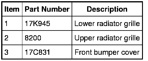 3. Release the upper radiator grille retaining clips from the front bumper cover and remove the upper radiator grille.