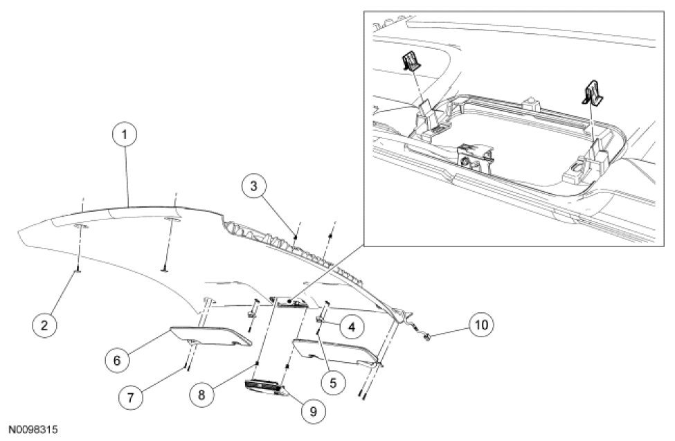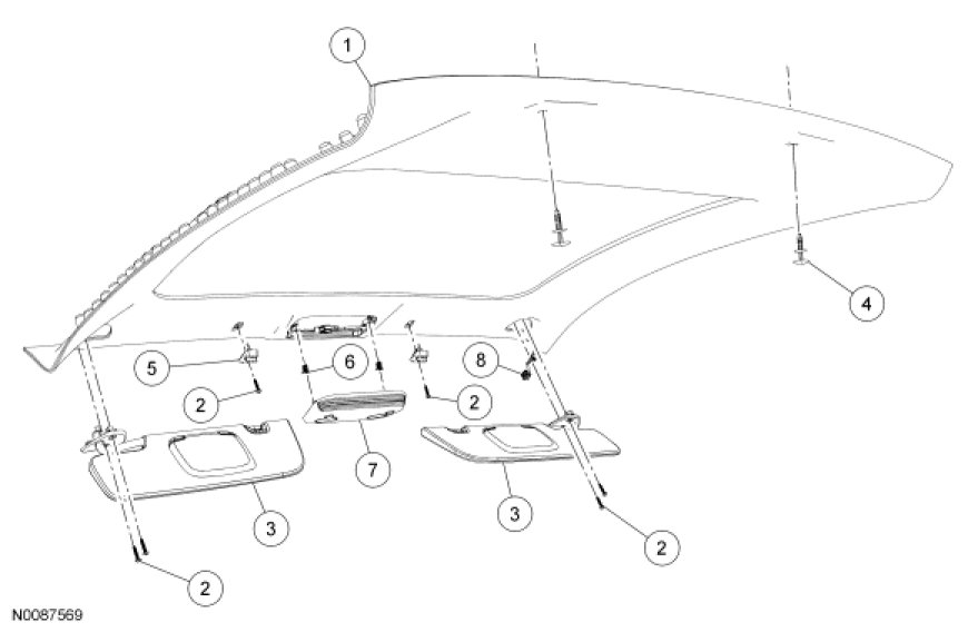4. Remove the overhead console. For additional information, refer to Instrument Cluster / Carrier &/or Interior Moulding / Trim