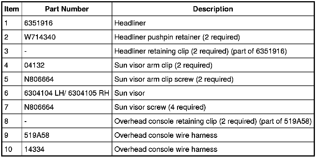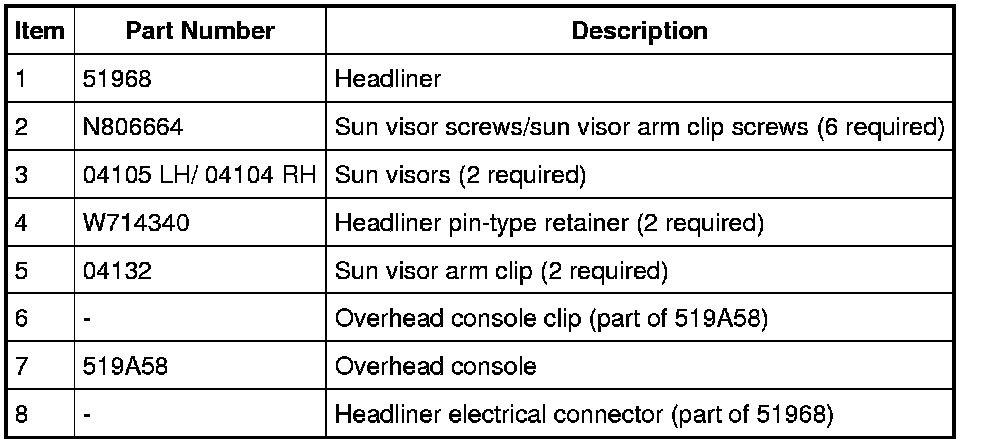 7. NOTE: A new headliner will need to be installed if the headliner is folded during removal or installation.