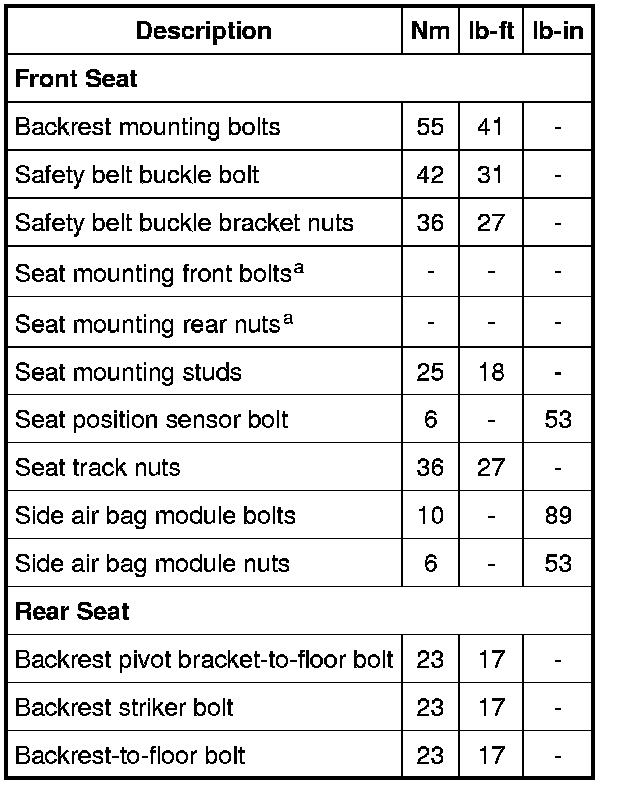 Seats: Specifications
