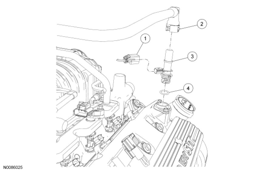 3. NOTICE: A new Positive Crankcase Ventilation (PCV) valve must be installed if removed. Upon removal, the plastic retaining ears of the PCV valve are sheared.