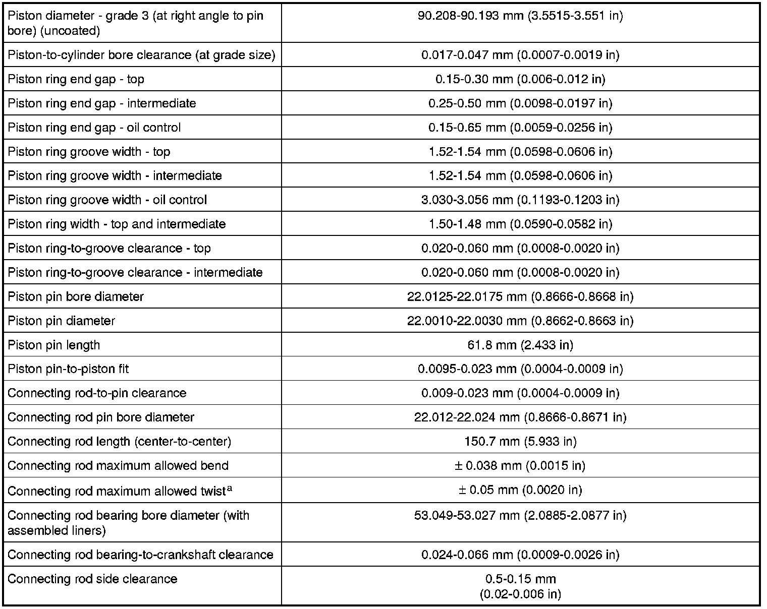 CONNECTING RODa The pin bore and crank bearing bore must be parallel and in the same vertical plane within the specified total difference when measured at the ends of a 203 mm bar, 105.5 mm on each side of rod centerline.