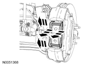 3. NOTICE: Do not allow the brake caliper to hang from the brake hose or damage to the hose may occur.