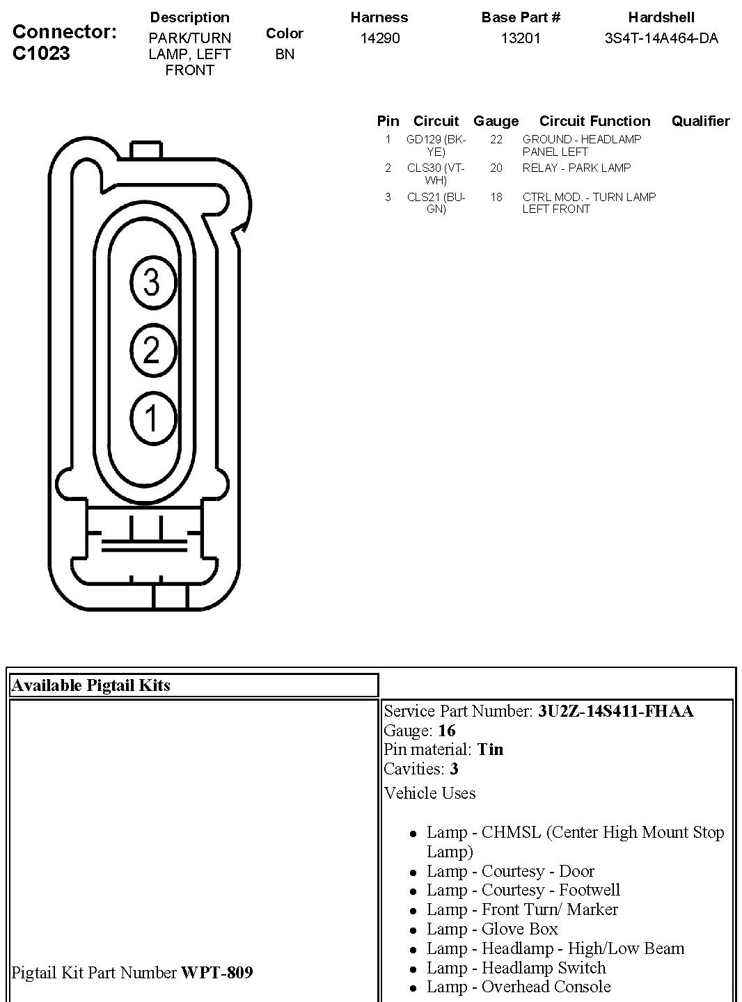 Park/Turn Lamp, Left Front