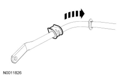 3. NOTE: To aid installation, apply a light coat of lubricant to the necessary parts of the front stabilizer bar and the inside diameter of the stabilizer bar bushing.
