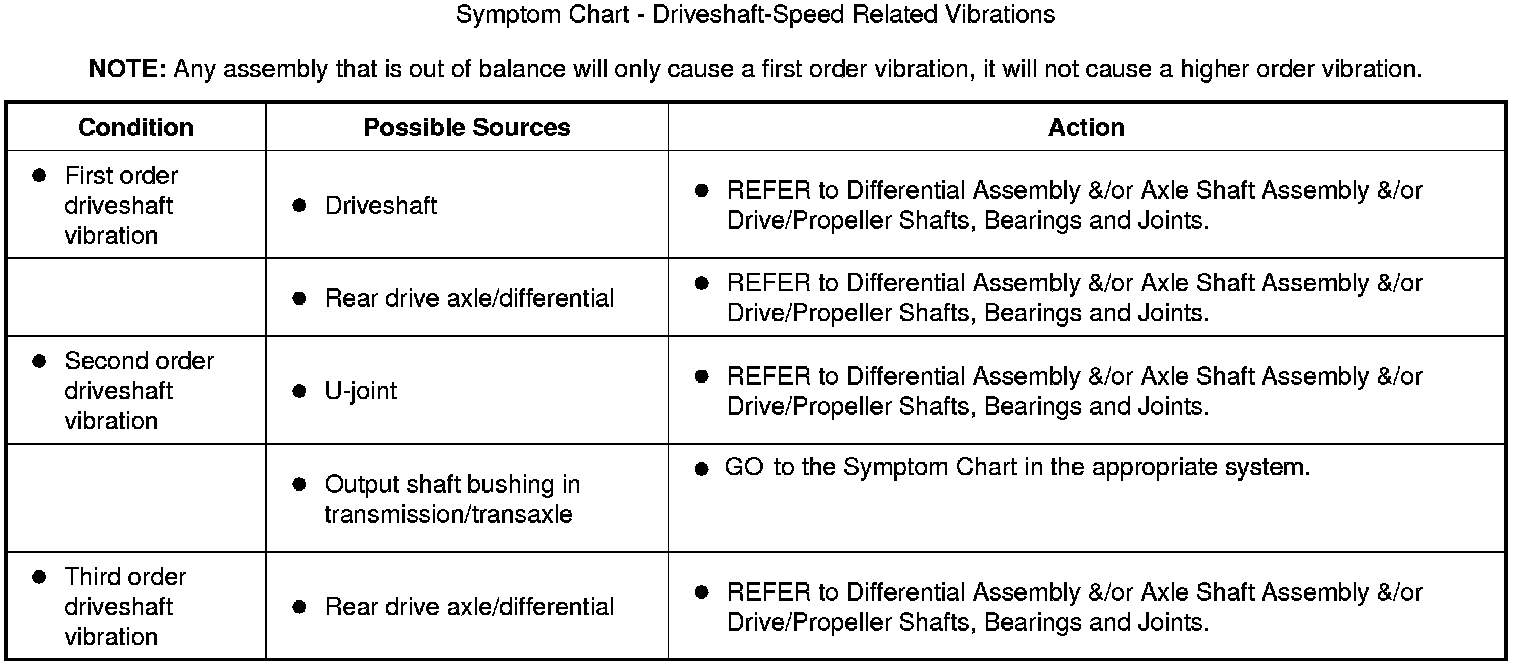 Symptom Chart - Driveshaft-Speed Related Vibrations