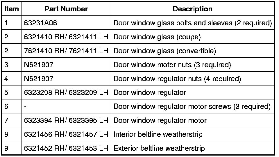 Glass, Frames and Mechanisms - Exploded View, Front Door