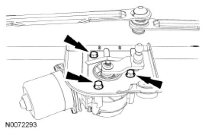 2. NOTE: Do not remove the wiper motor linkage arm from the wiper motor assembly. If the arm is removed, the wiper arms may not park in the correct location.