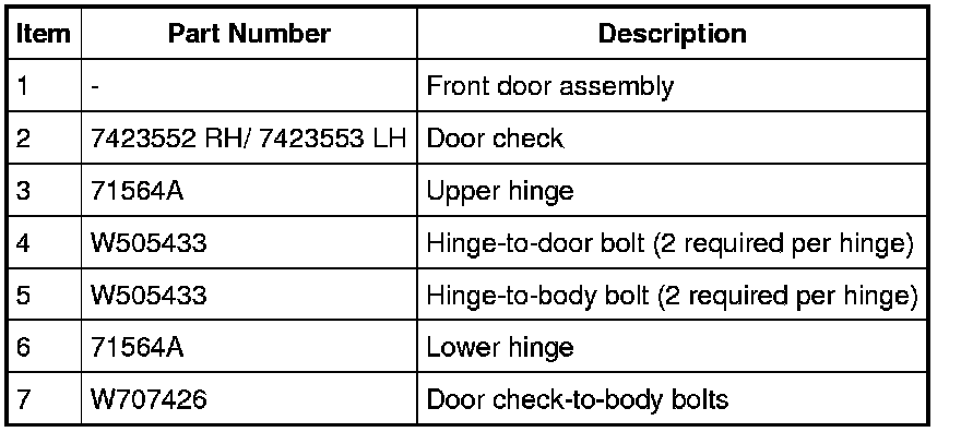 NOTE: Front door shown, rear door similar.