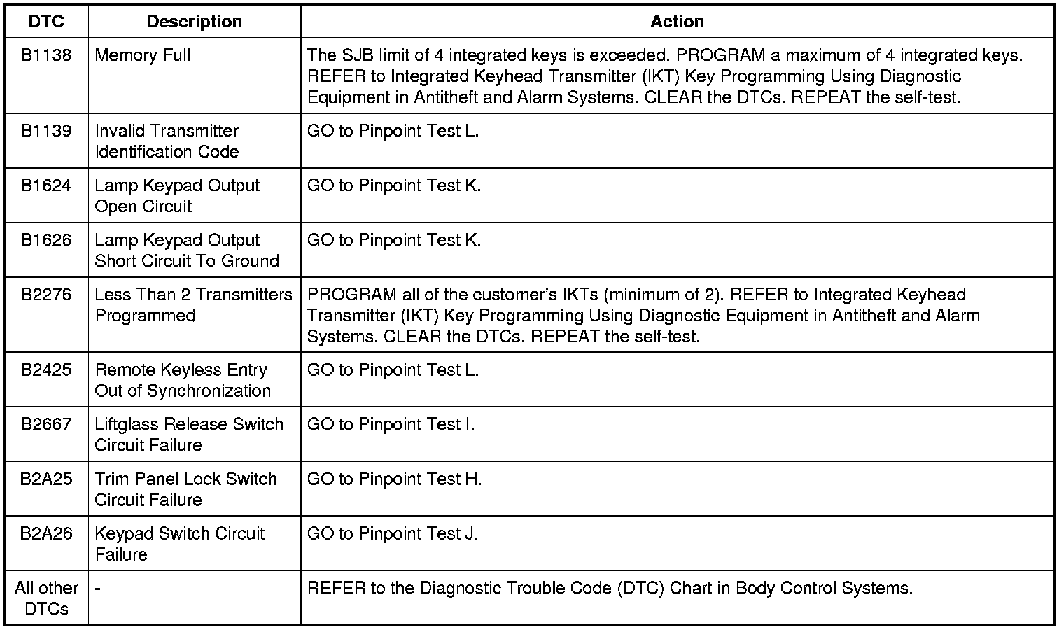 Smart Junction Box (SJB) DTC Chart