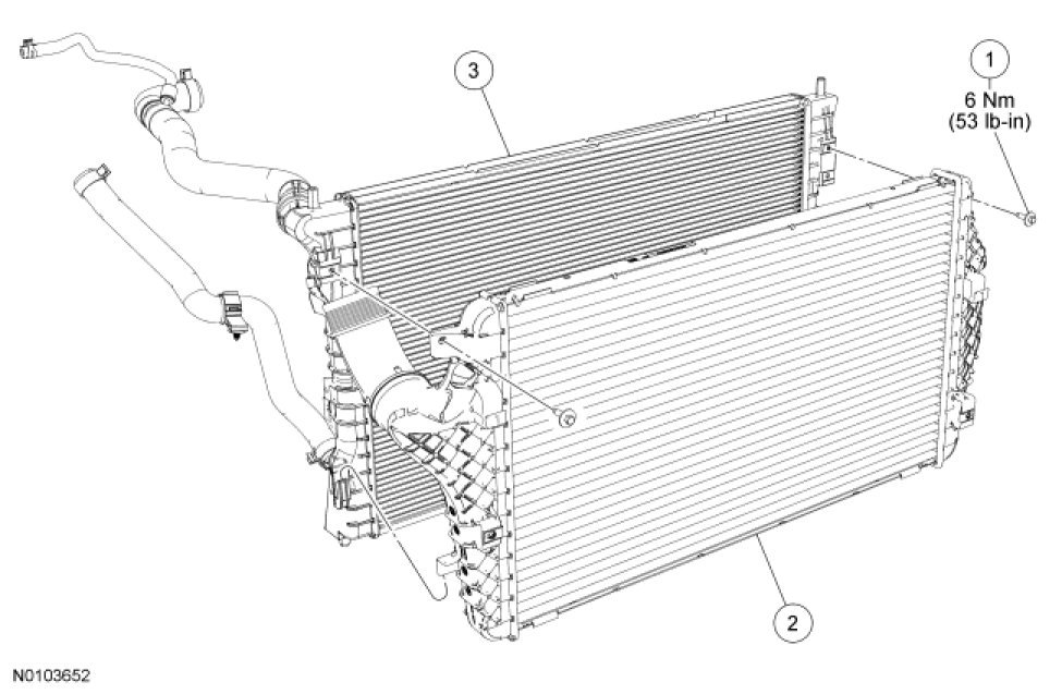 13. NOTE: Make sure the bottom radiator insulators are in place when installing the radiator.