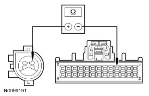 - Measure the resistance between ambient air temperature sensor C132-1, circuit VH407 (YE/GN), harness side and C132-2, circuit RH107 (GN/BU), harness side.