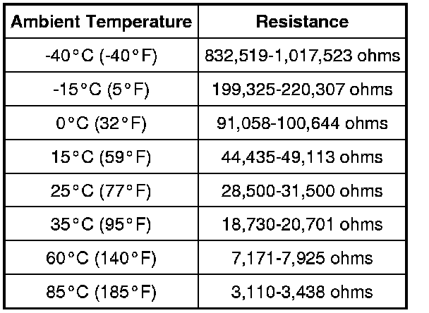 - Measure the resistance between the ambient air temperature sensor C132 terminals and compare to the table below.