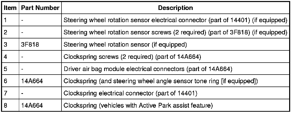 NOTICE: Do not over-rotate the clockspring inner rotor. The internal ribbon wire is connected to the clockspring rotor. The internal ribbon wire acts as a stop and can be broken from its internal connection. Failure to follow this instruction may result in component damage and/or system failure.