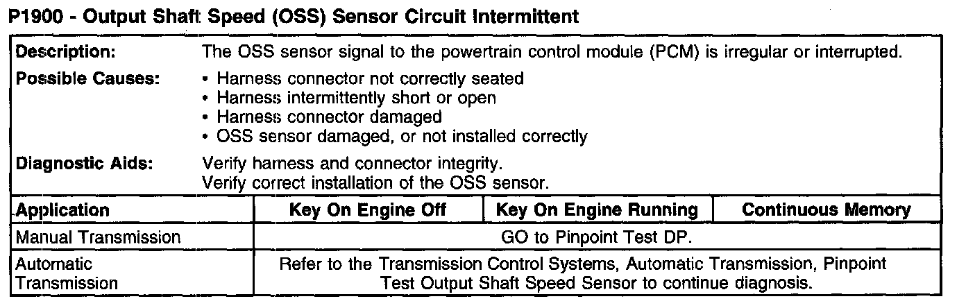 P1900 - Output Shaft Speed (OSS) Sensor Circuit Intermittent: