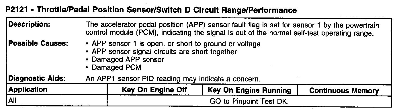 P2121 - Throttle/Pedal Position Sensor/Switch D Circuit Range/Performance: