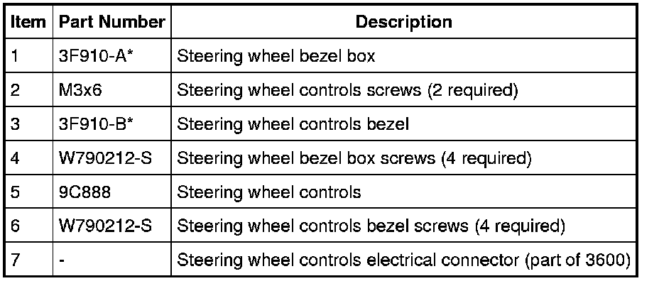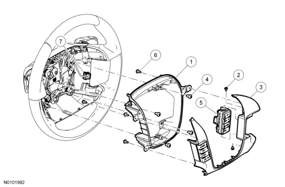 1. Remove the driver air bag module. For additional information, refer to Restraint Systems.