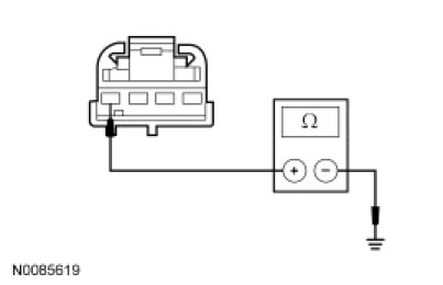 - Measure the resistance between the FCIM C2402-4, circuit GD114 (BK/BU), harness side and ground.