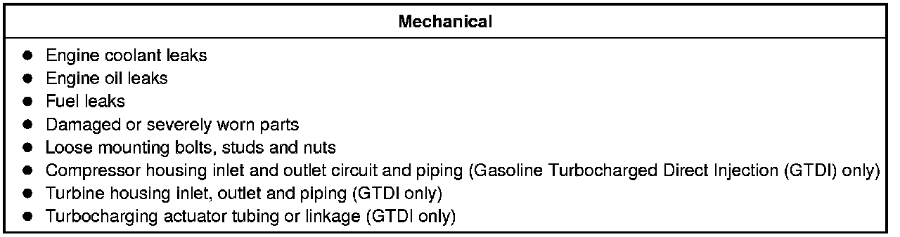 2. Visually inspect for obvious signs of mechanical damage. Refer to the following chart.