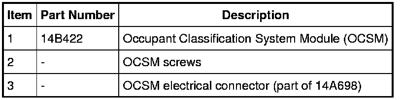 - Carry out OCS system reset. For additional information, refer to Occupant Classification Sensor (OCS) System Reset Programming and Relearning.