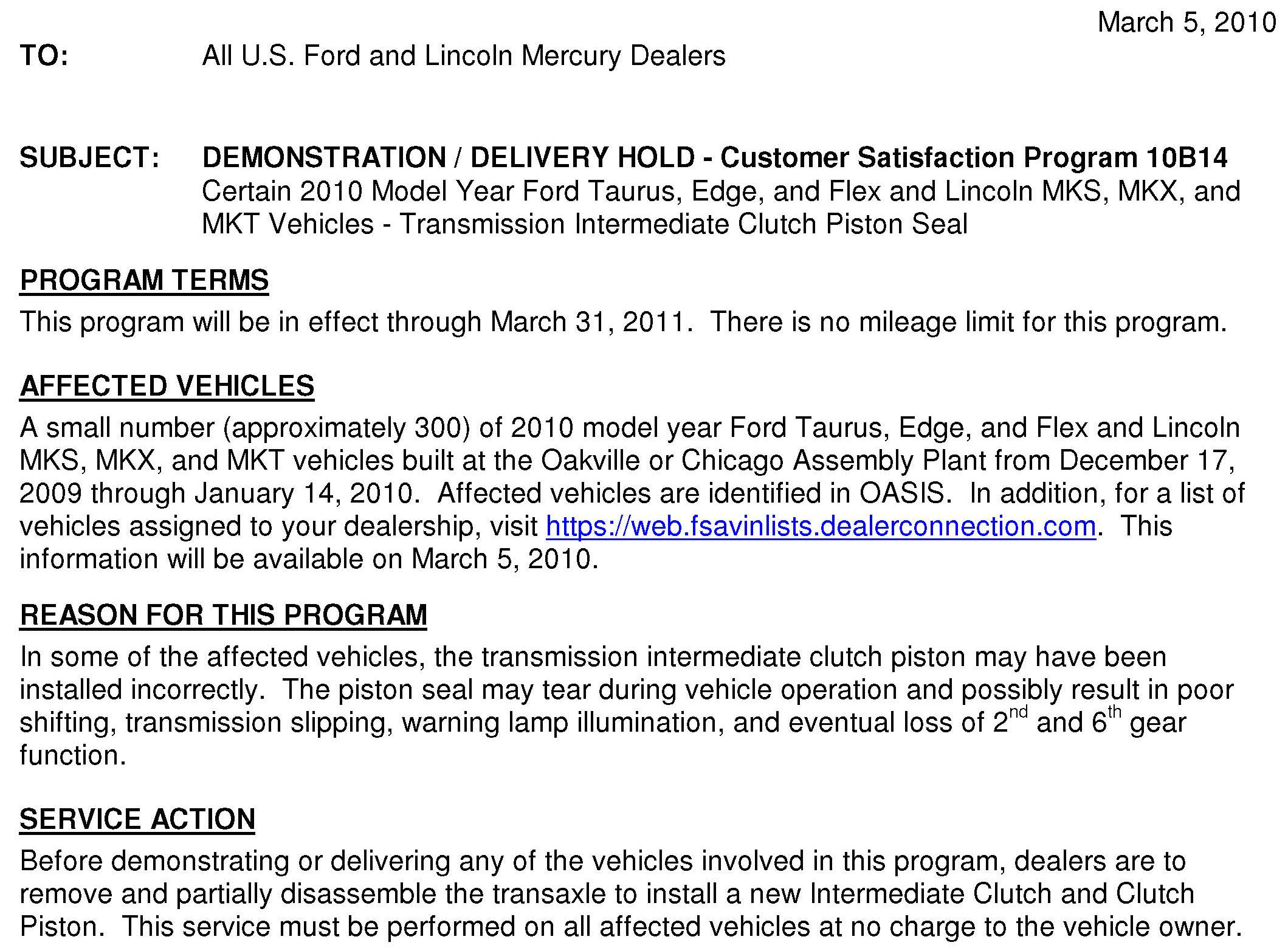 Campaign - A/T Intermediate Clutch/Piston Repair