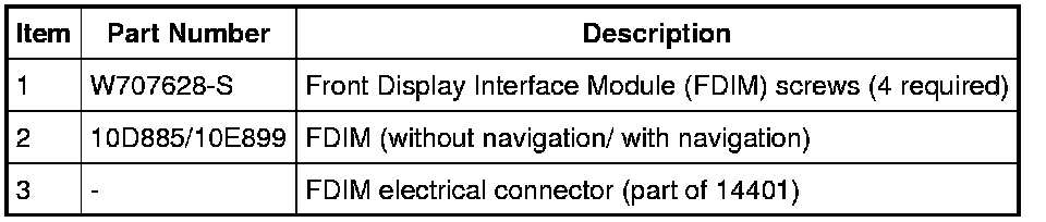 NOTE: Vehicles without navigation require Programmable Module Installation (PMI) when a new module is being installed. For vehicles with navigation, the Front Display Interface Module (FDIM) is not a stand-alone module.
