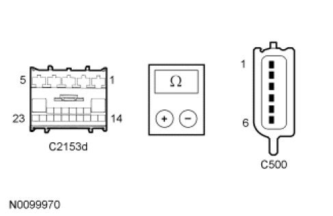 - For early build vehicles, measure the voltage between the keyless entry keypad C500-6, circuit SBP13 (GY/RD), harness side and ground.