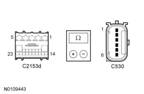 - For late build vehicles, measure the resistance between the keyless entry keypad C530-6, circuit GD133 (BK), harness side and ground.