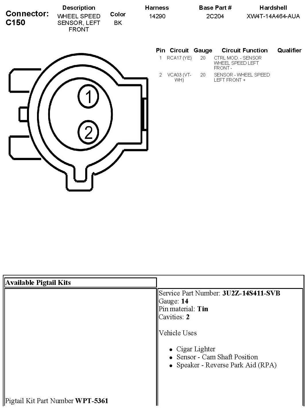 Wheel Speed Sensor, Left Front