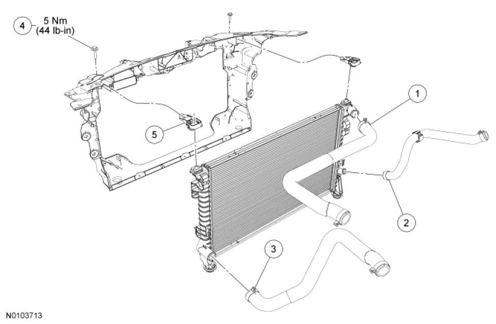 8. NOTE: Make sure the bottom radiator insulators are in place when installing the radiator.