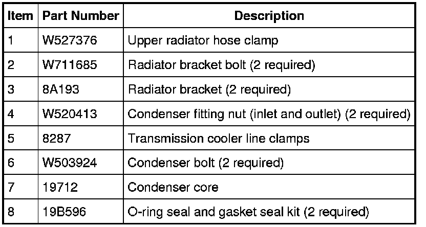 10. Release the 2 transmission cooler line clamps and disconnect the lines from the condenser core.