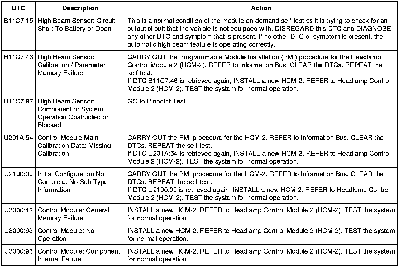 Headlamp Control Module 2 (HCM-2) DTC Chart