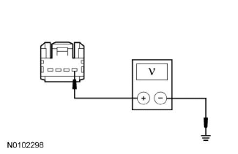 - Measure the voltage between the FCIM C2402-1, circuit SBP16 (VT/RD), harness side and ground.