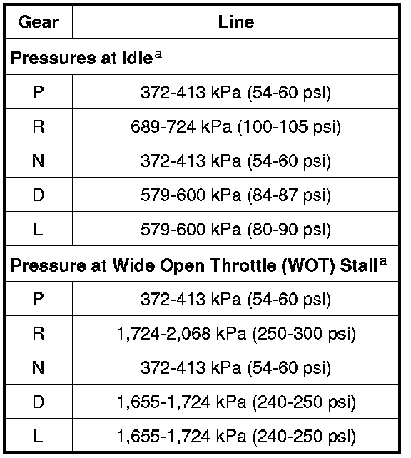 2. Start the engine and check the line pressures see the line pressure chart to determine if the line pressure is within specification.