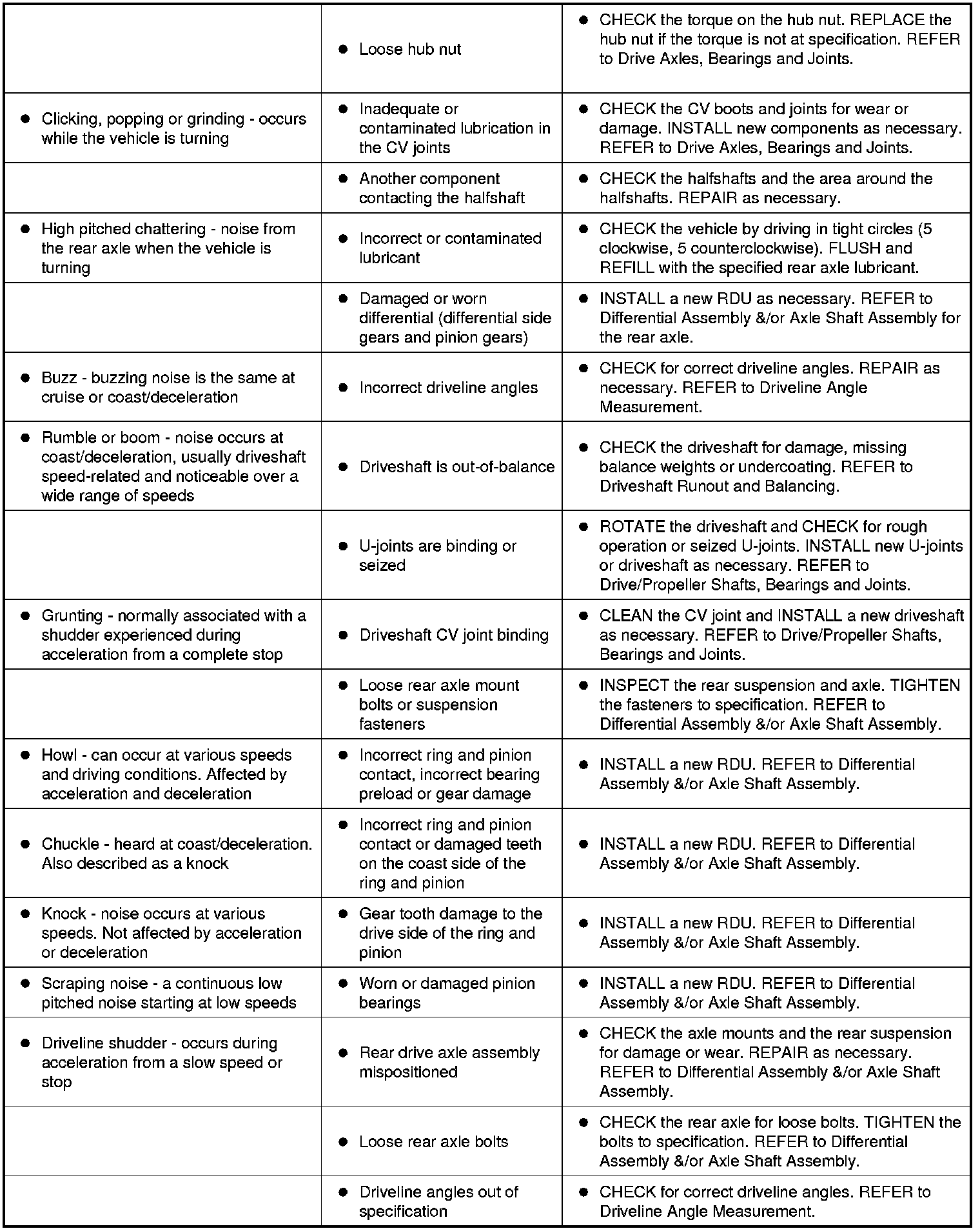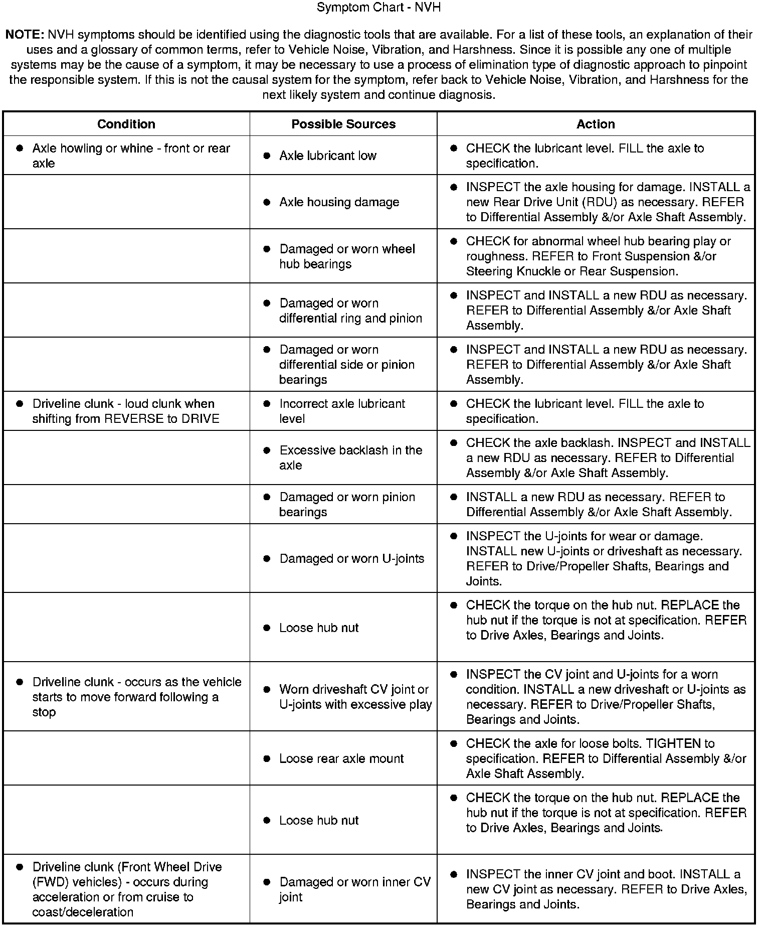 Symptom Chart - NVH