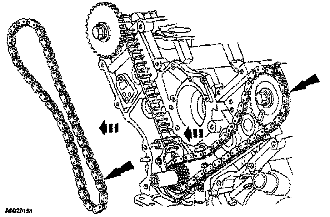- Remove the RH timing chain from the camshaft sprocket.
