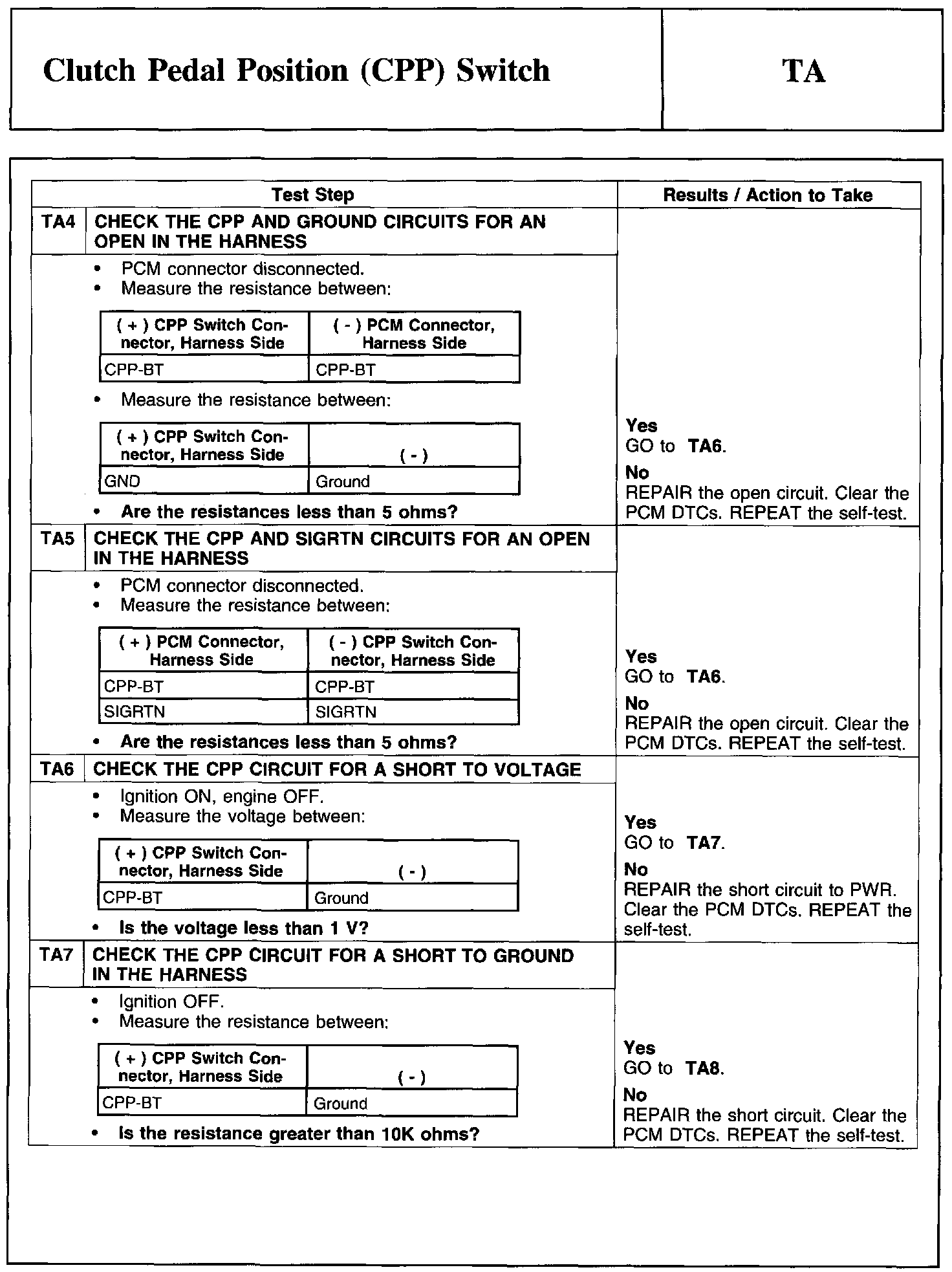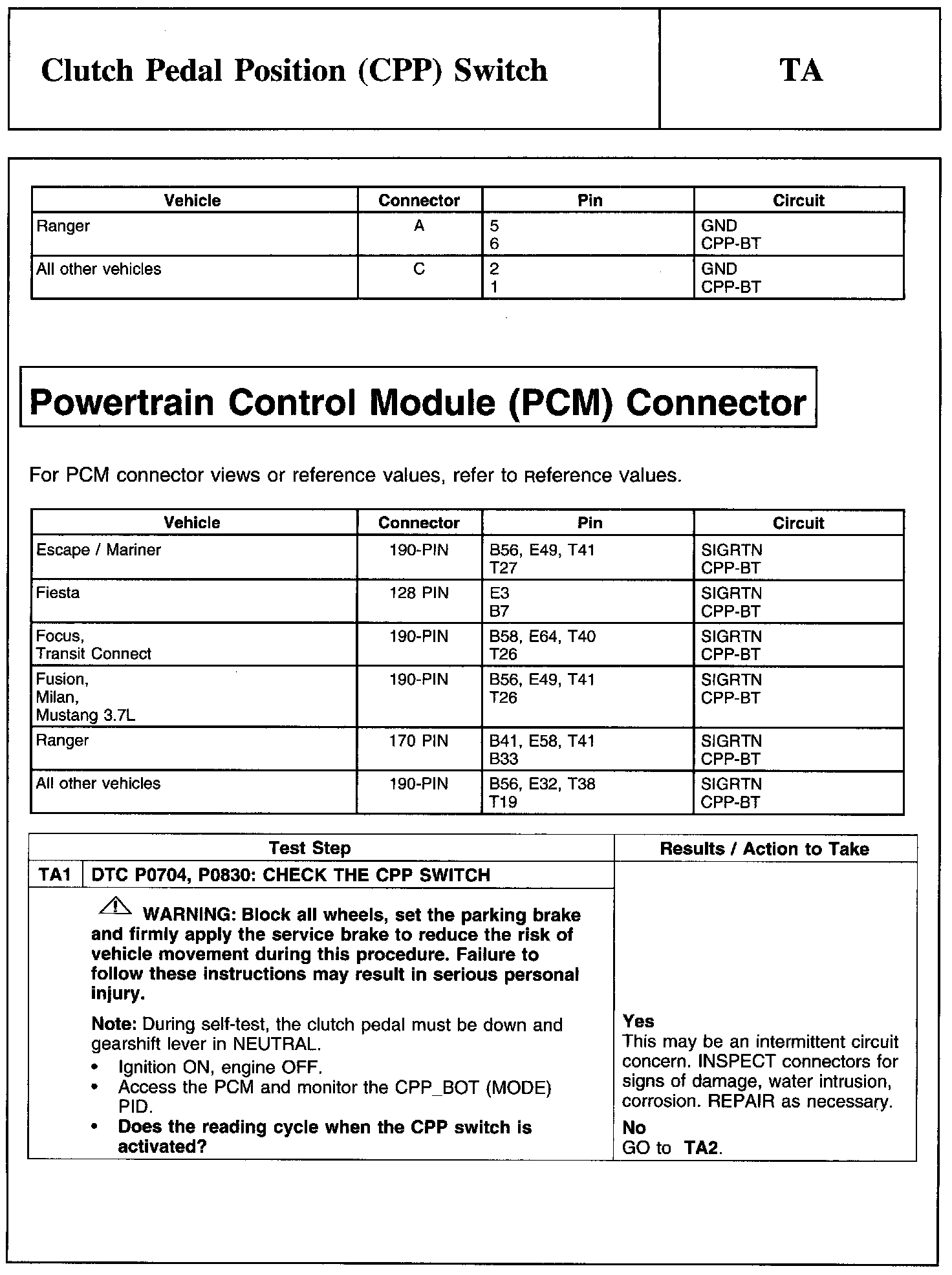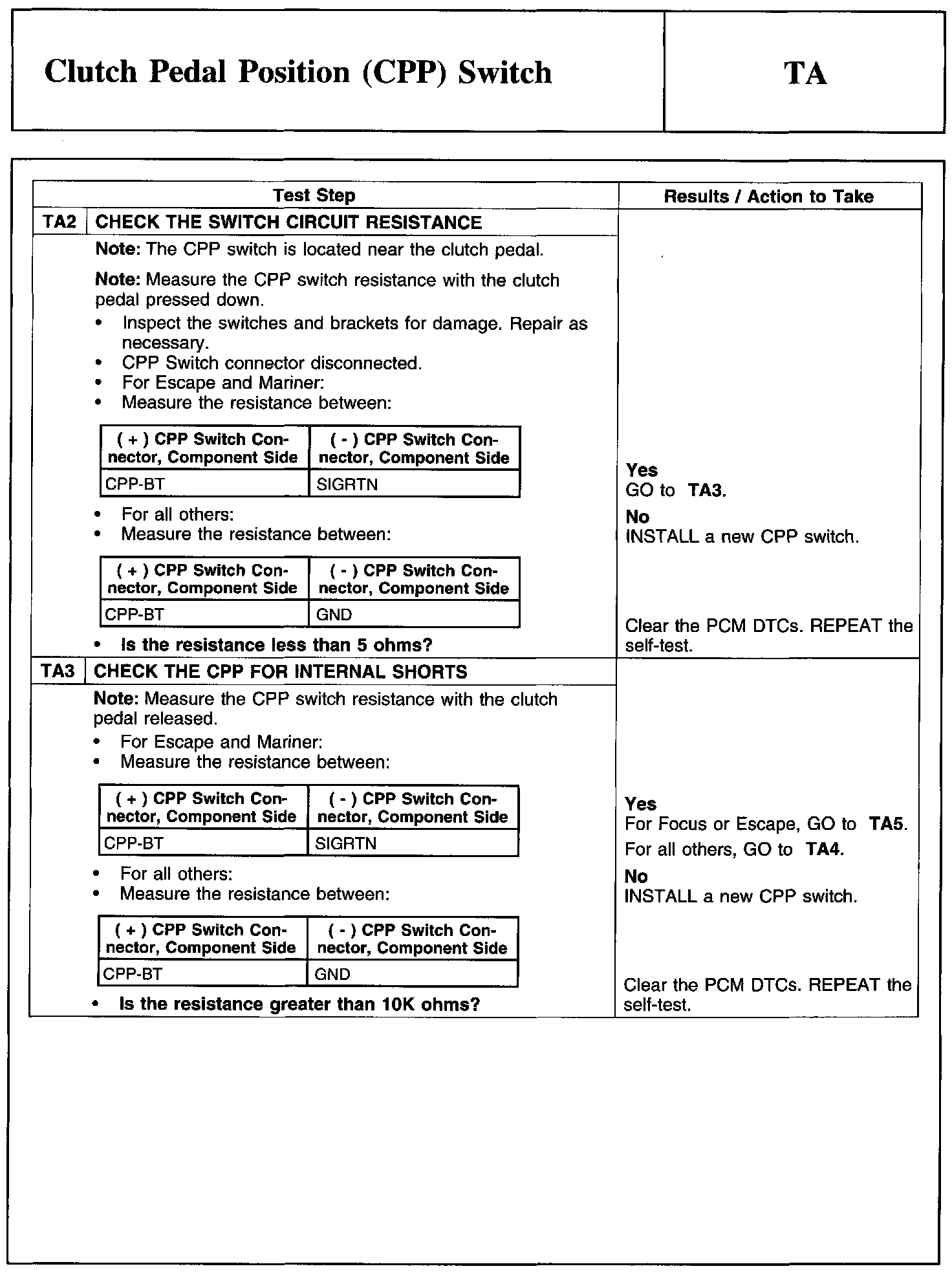 Test TA: Clutch Pedal Position (CPP) Switch
