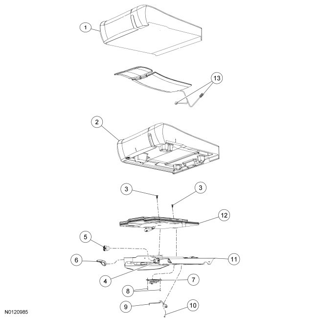 9. NOTICE: It is necessary to carry out the Occupant Classification System (OCS) system reset when a front passenger seat cushion is disassembled, a new seat cushion cover installed or an OCS service kit is installed. A scan tool is used to carry out the OCS system reset.