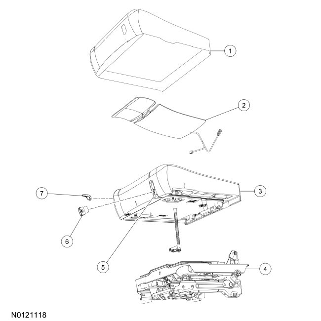 7. NOTICE: Inspect the seat cushion pad and frame for any foreign objects before installing the seat cushion frame to the seat cushion pad. If any foreign objects are found, remove them. Failure to follow this instruction may result in system failure and the incorrect operation of the Occupant Classification System (OCS) system.