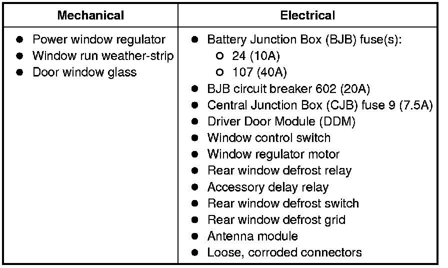 9. If the DTCs retrieved are related to the concern, go to Driver Door Module (DDM) DTC Chart Diagnostic Trouble Code Tests and Associated Procedures. For all other DTCs, refer to Multifunction Electronic Modules Testing and Inspection.