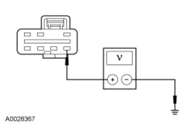 - Measure the voltage between rear window defrost switch C241-4, circuit 59 (DG/VT), harness side and ground.