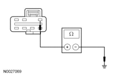 - Measure the resistance between rear window defrost switch C241-7, circuit 57 (BK), harness side and ground.